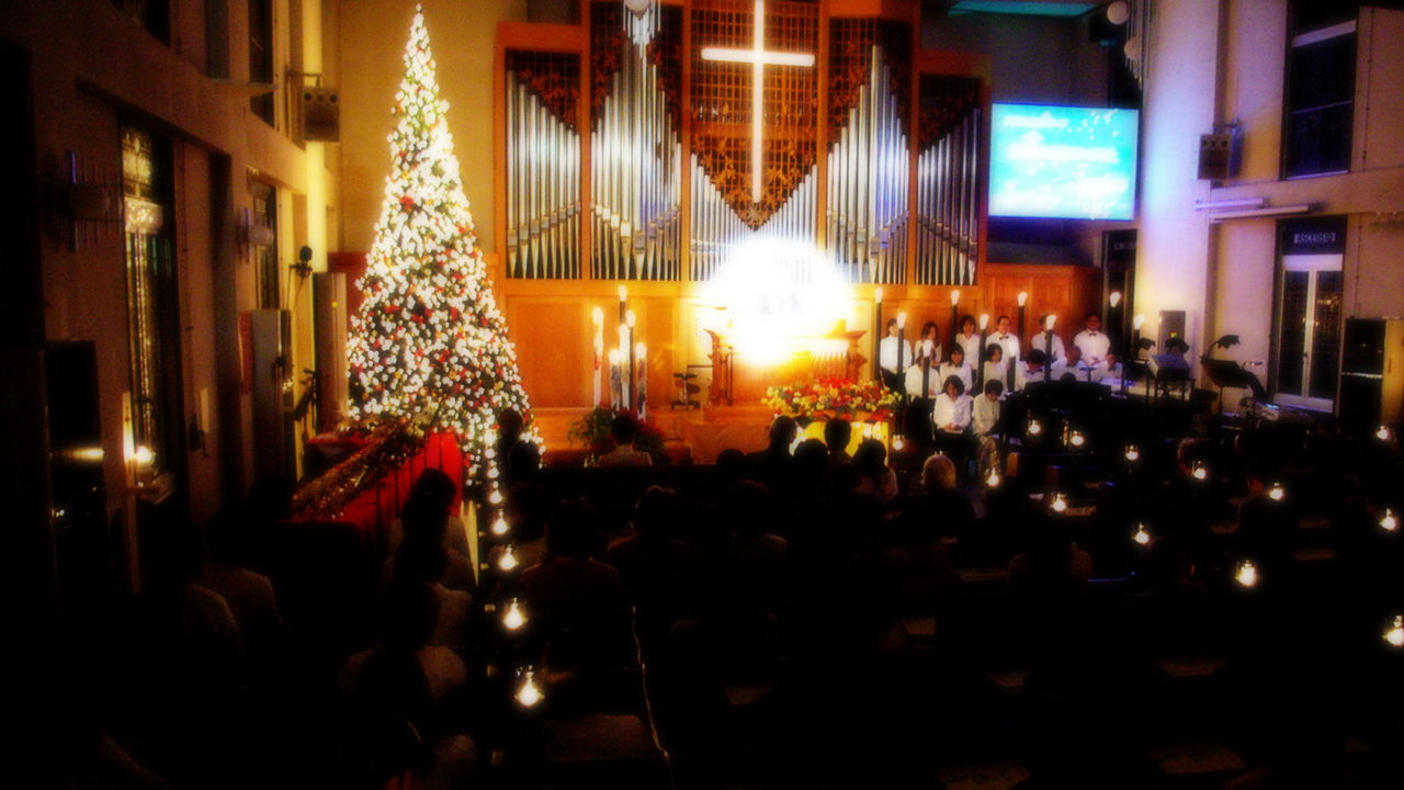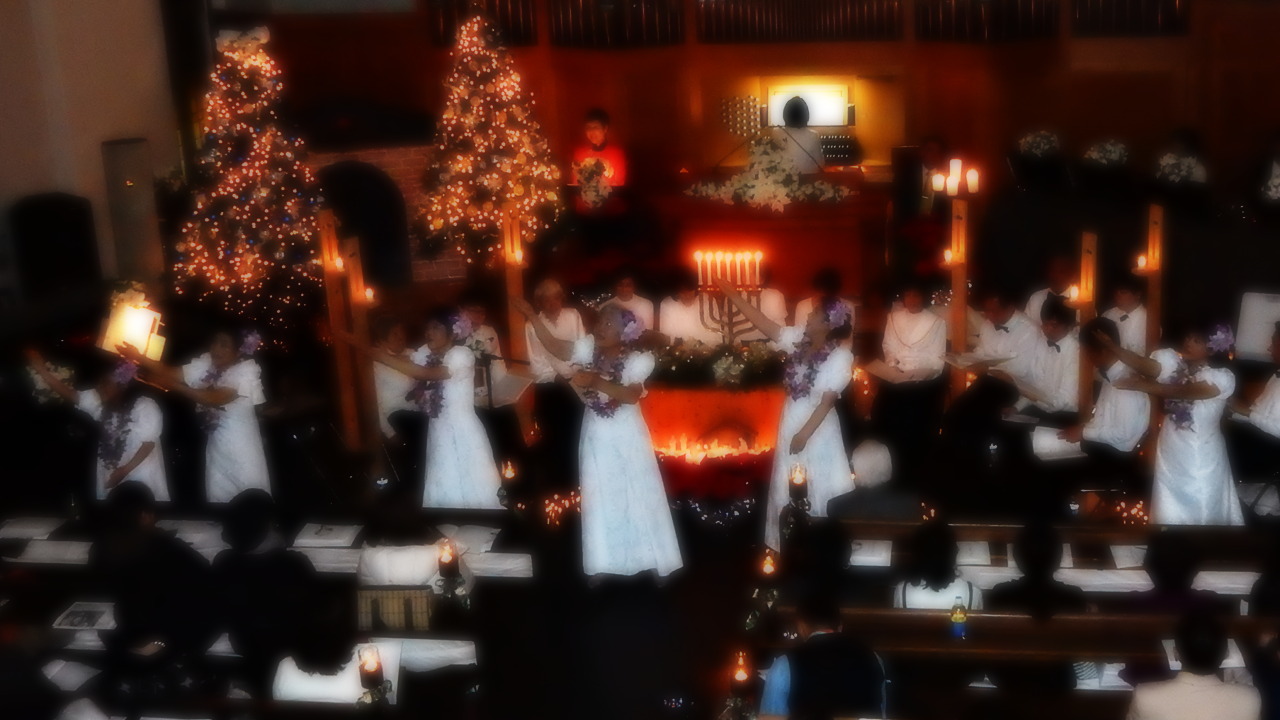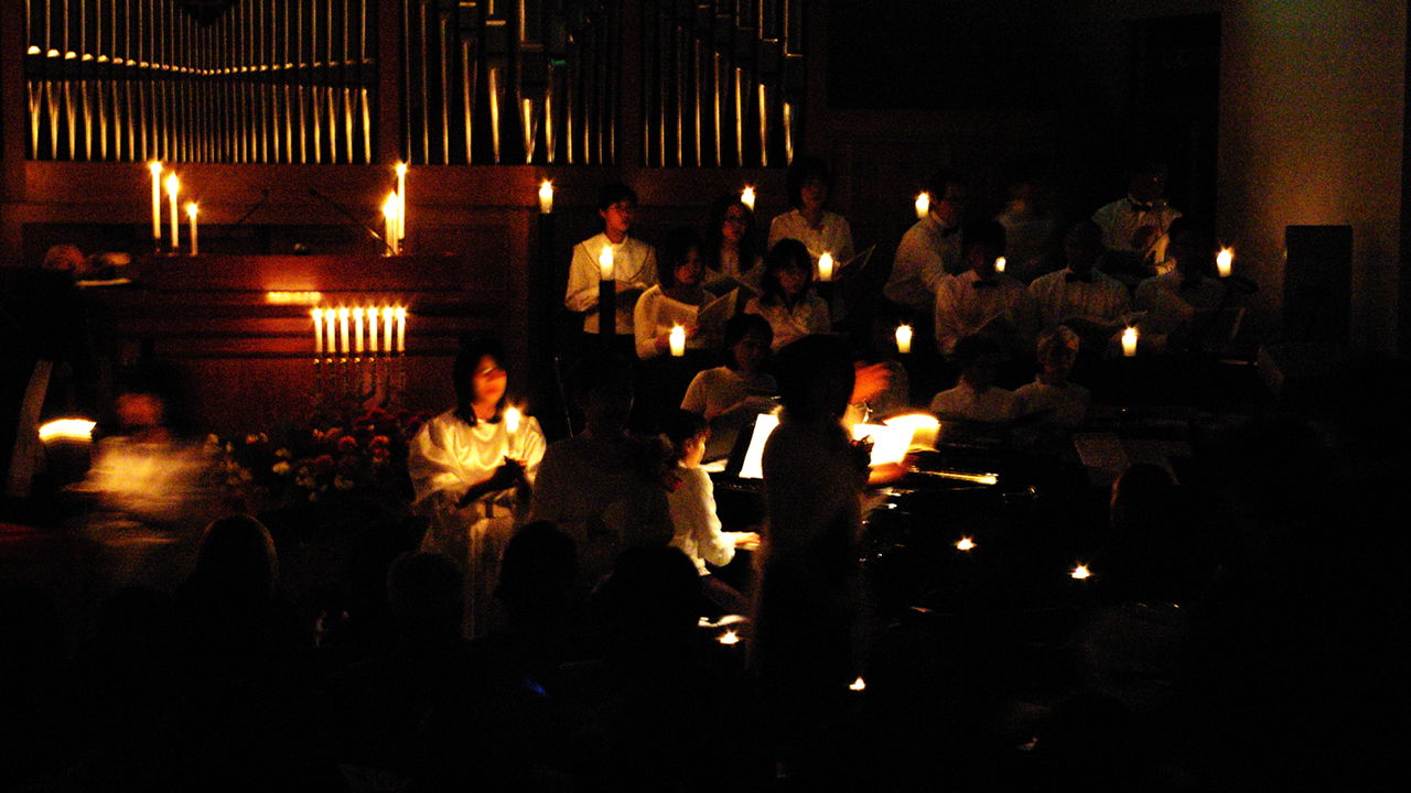 クリスマスソングの響きと幻想的なキャンドルの光の中で,クリスマスの本当の意味をお聴きになりませんか?